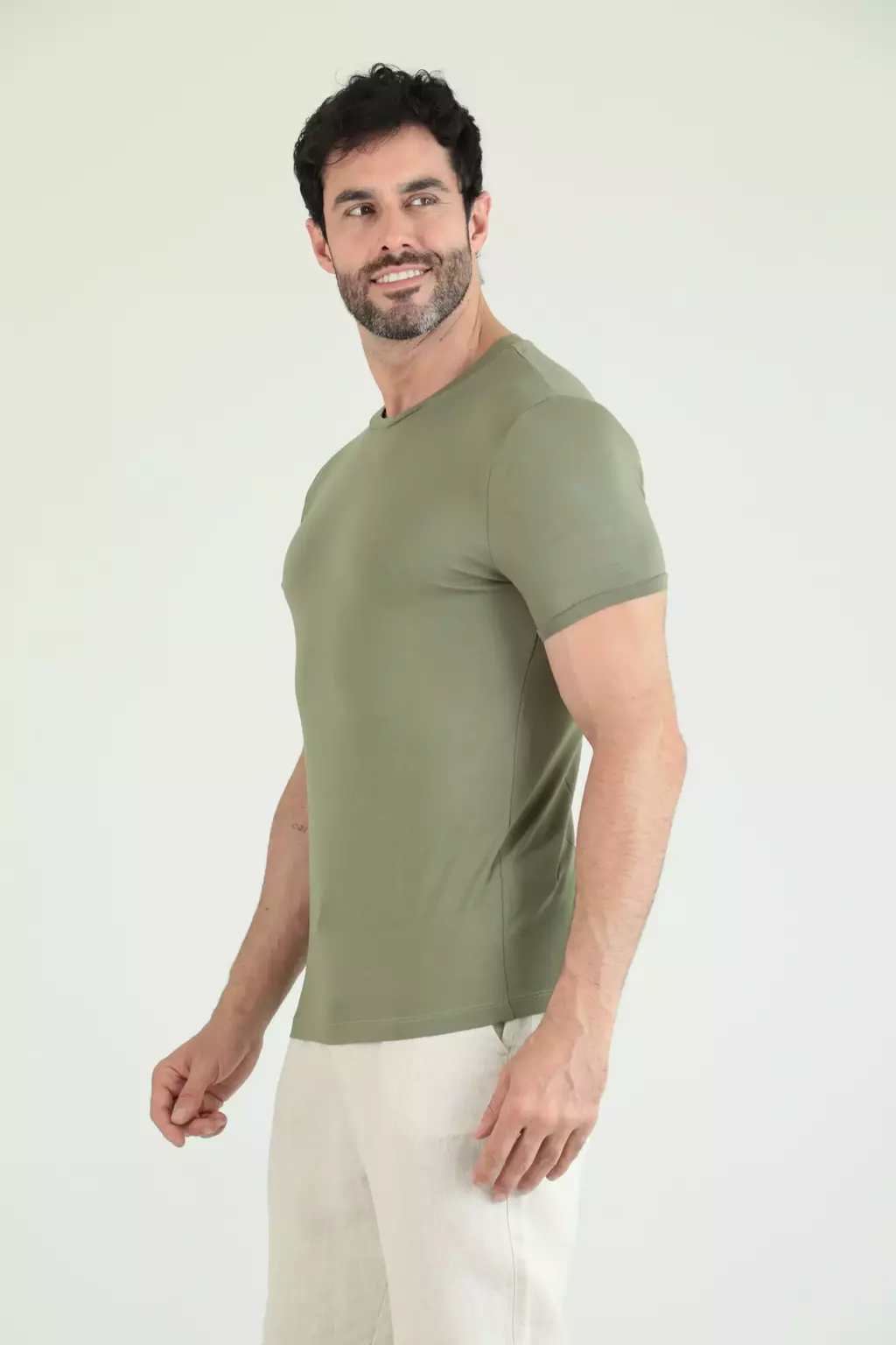 Com manga curta, a Camiseta de Viscose Masculina é ideal para climas quentes e ocasiões informais. As mangas curtas oferecem um visual descontraído e arejado, proporcionando conforto e liberdade de movimento. Esta característica torna a camiseta perfeita para atividades ao ar livre, passeios casuais ou como uma peça de sobreposição leve.
